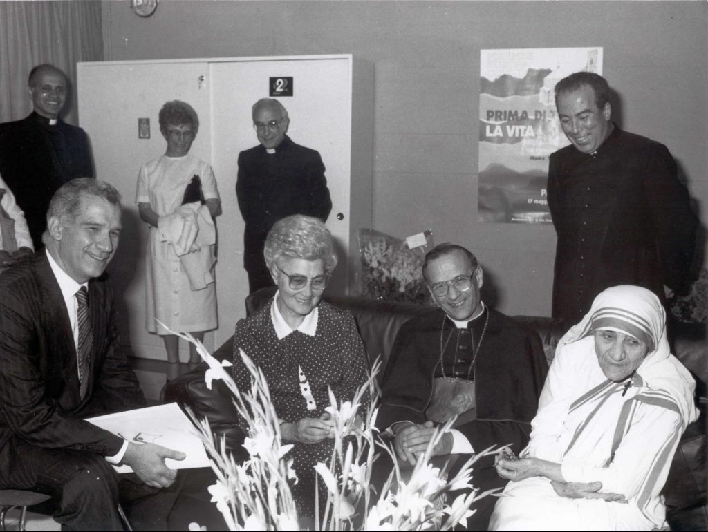 Ora lo penseremo lassù, in compagnia degli amici santi, Giovanni Paolo II e Madre Teresa di Calcutta, cui fu caro e che ebbe cari fra i difensori della vita. E preghiamo che tenga cari anche noi, e ci aiuti ancora nel tener fedeltà alla promessa che lui stesso ci ha ispirato e nutrito, e che serbiamo in cuore con gioia più forte del pianto.